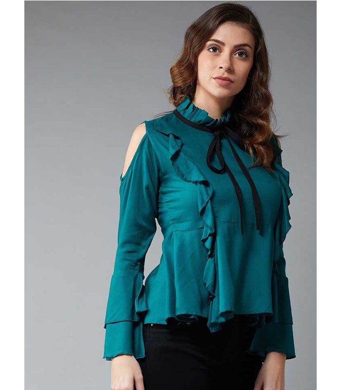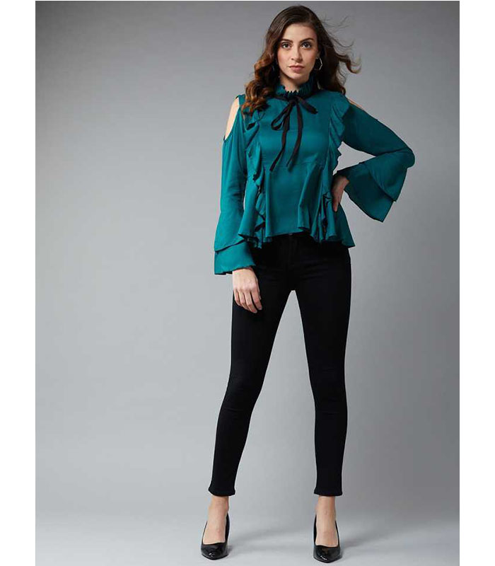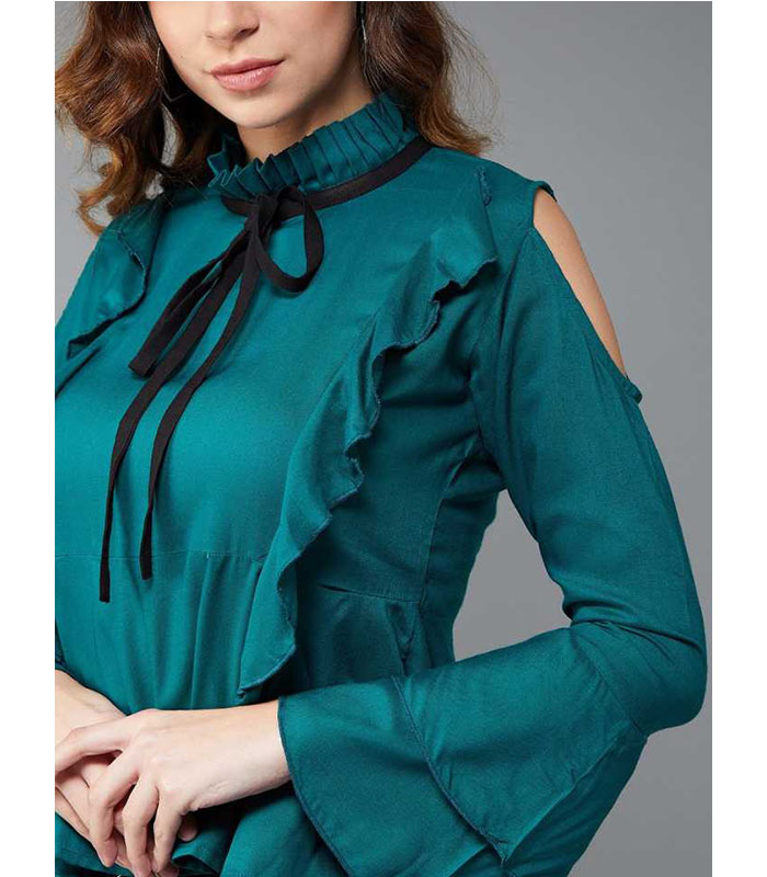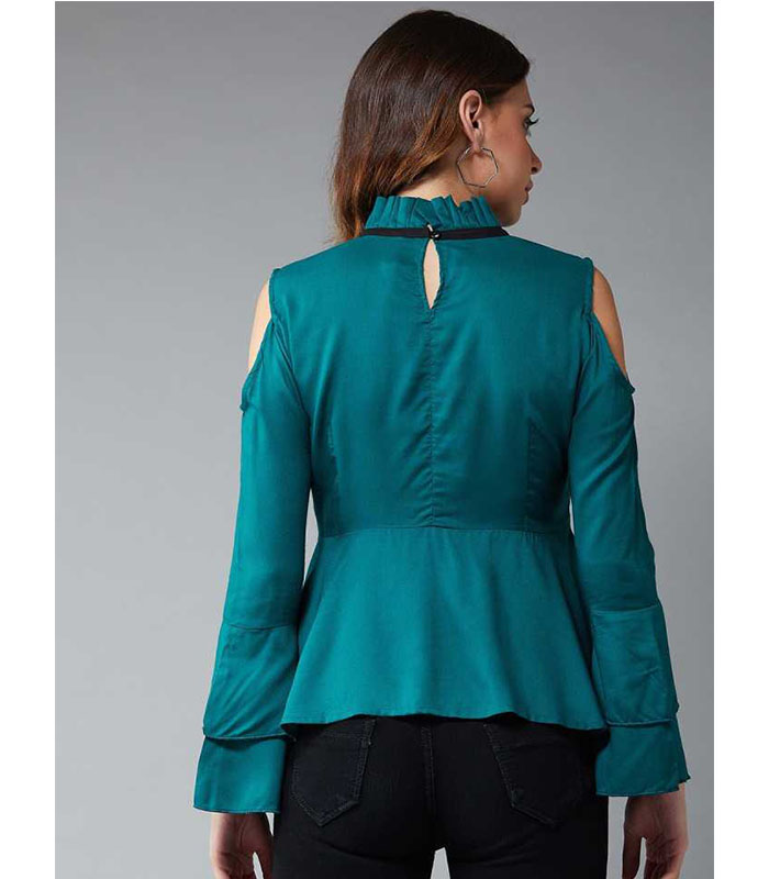 Casual Bell Sleeve Solid Women Green Top quantity
