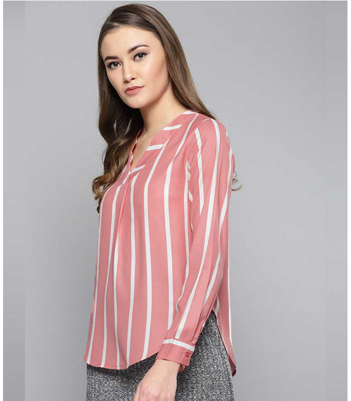 Casual Regular Sleeve Striped Women Pink Top quantity