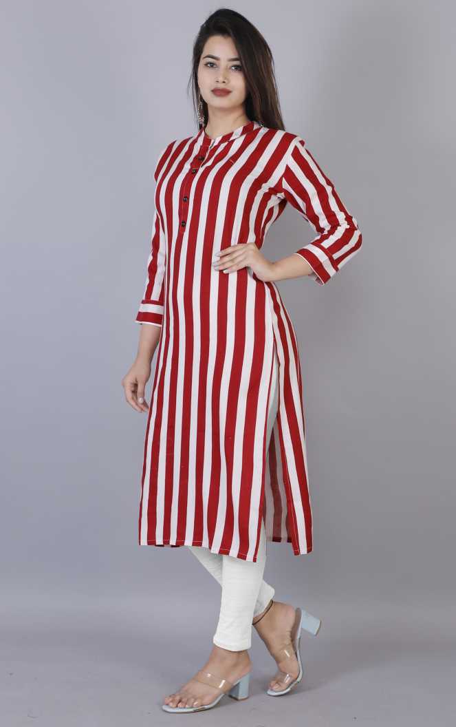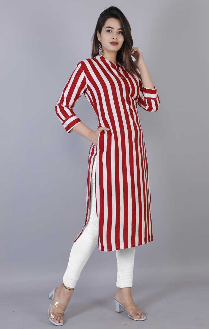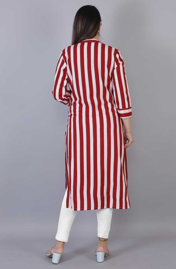 Women Striped Cotton Rayon Blend Straight Kurta quantity