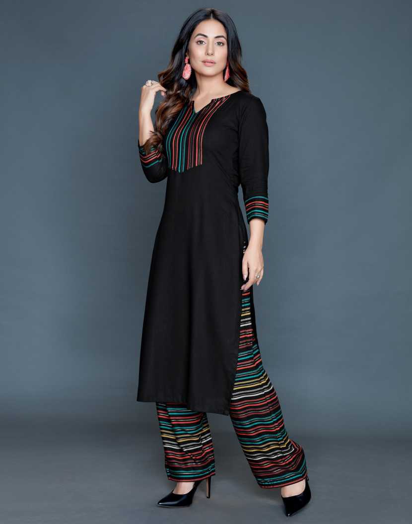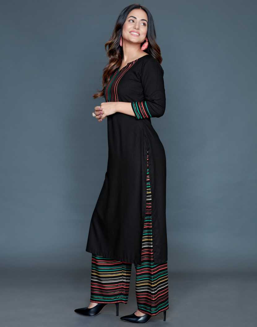 Women Striped, Printed, Embellished Rayon Straight Kurta
